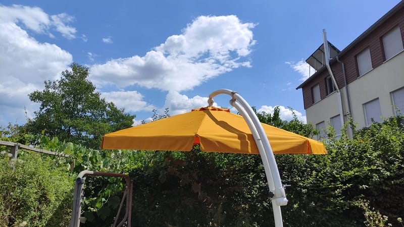 Anleitung: Bezug bei einem Ampelschirm ohne Klettband austauschen